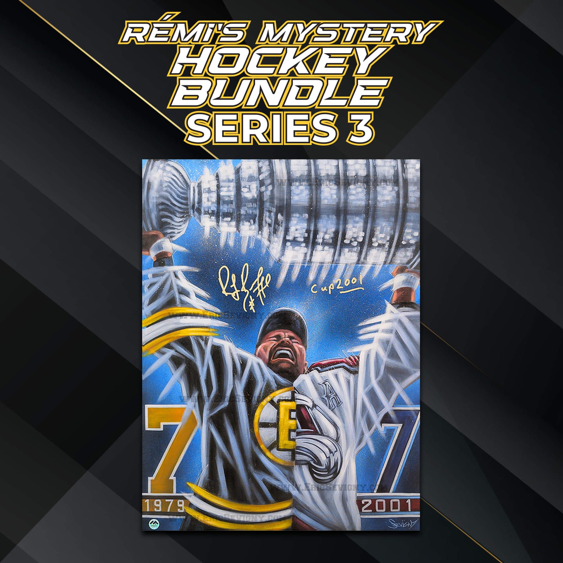 - 7️⃣ Toile 20x15 Ray Bourque /15 Auto (Éric Sévigny) – 450 $